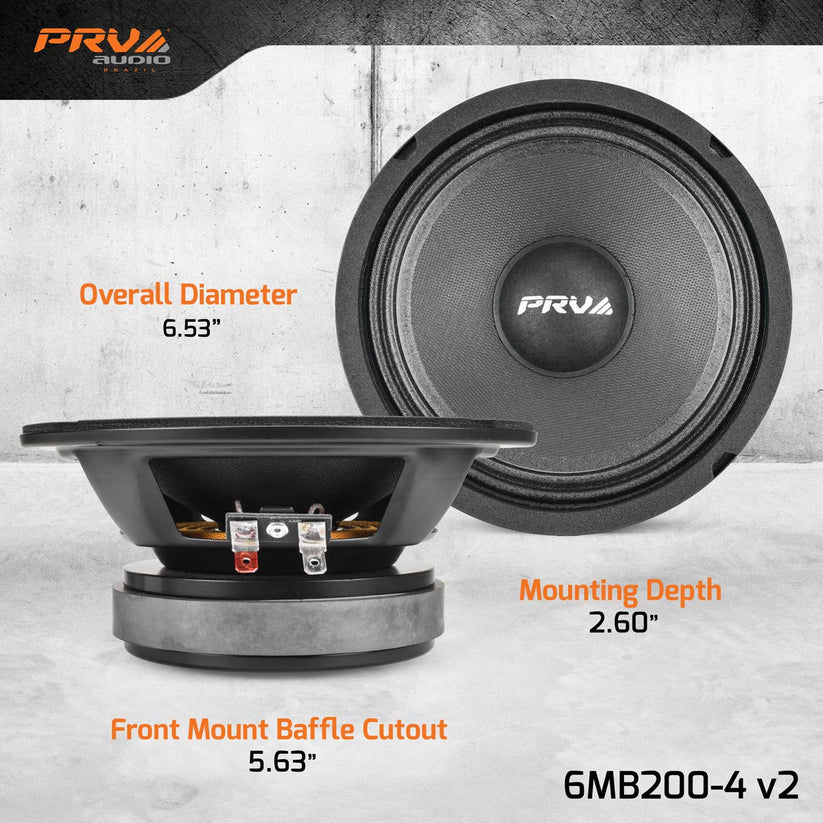 The PRV Pro Audio 6MB200-4 v2 midbass woofer offers exceptional durability and the smooth punch of mid bass response in a small enclosure. This midbass is perfect for car audio applications such as door speakers to significantly increase output using the stock location.