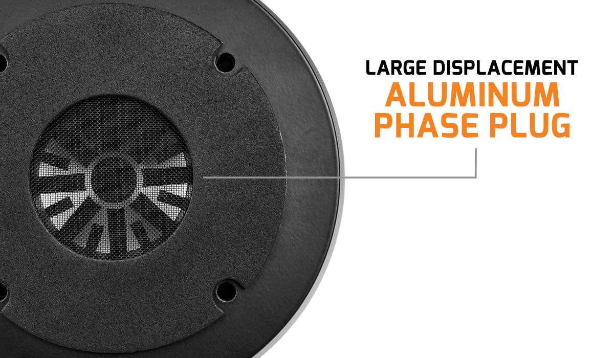 An injected and machined, high-precision aluminum phase plug provides better voice coil heat dissipation and high output levels.