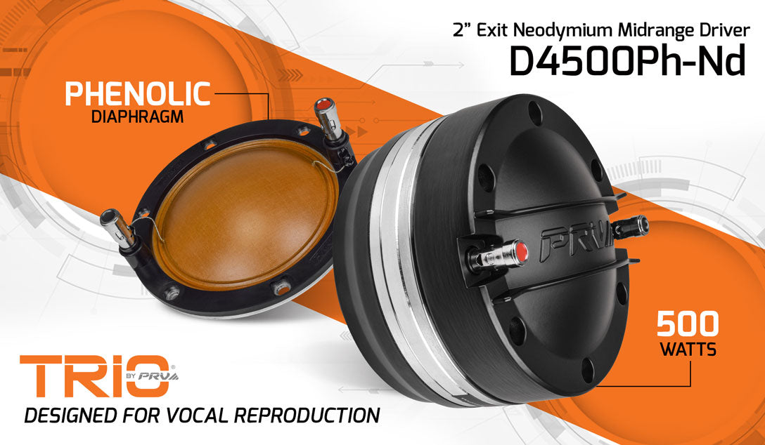 PRV Trio 2″ Neodymium Midrange Driver D4500Ph-Nd 500 Watts 4” Voice Coil 8 Ohm – Phenolic Diaphragm