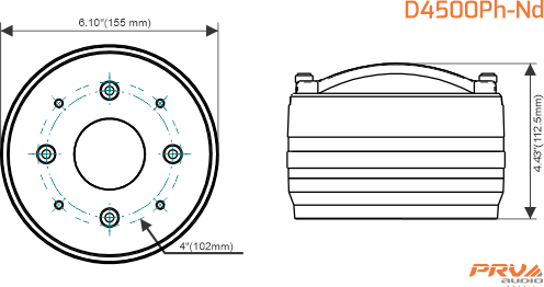 The phenolic diaphragm is attached to a 4″ diameter copper-clad aluminum wire with Kapton® former for a high 500 Watts RMS musical power handling, when used with recommended HPF using PRV Digital Signal Processor DSP